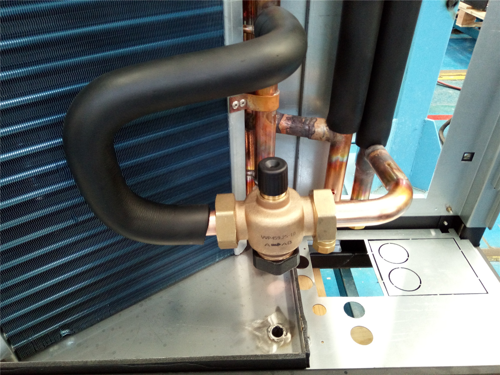 采用大平板设计,换热器翅片采用亲水处理,有效提高换热效率,冷冻水盘管承压能力大于等于1.6MPa,有效杜绝泄露的隐患。
